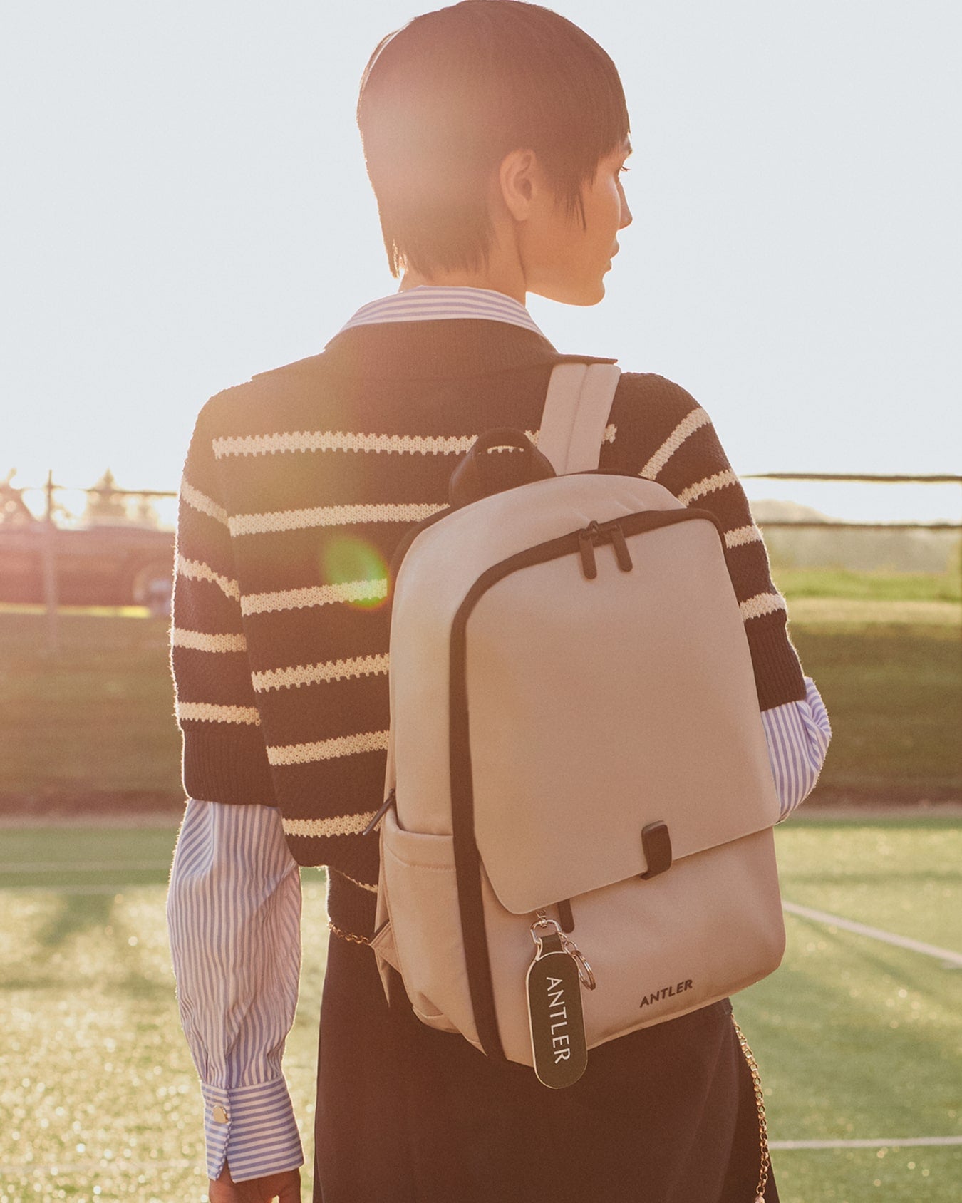 Inspired by garden games, lawn sports that always become a touch too competitive, and the golden glow of outdoor play, this is travel styling made for movement – complete with contrast stitching, color-pop leather, and effortless packability.