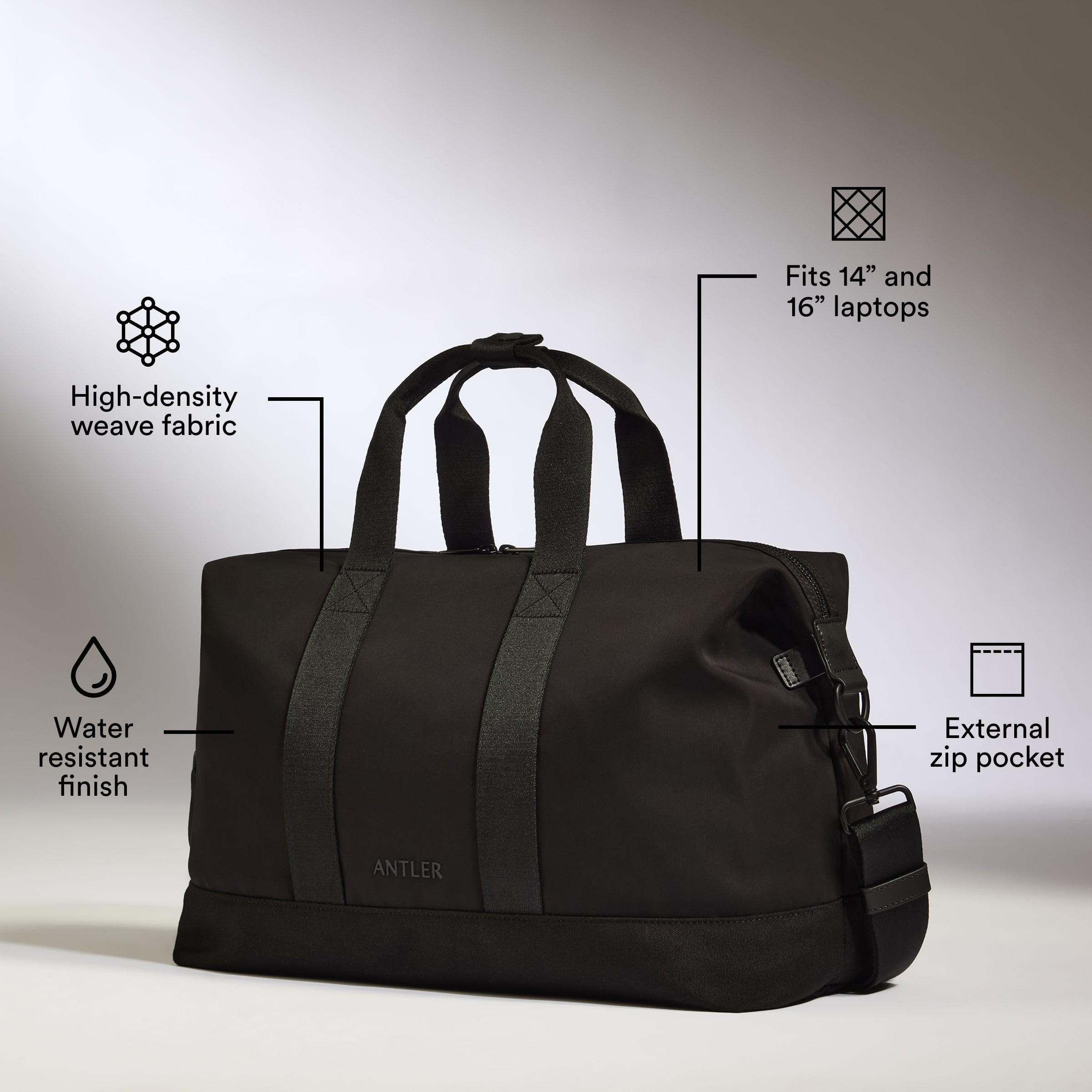 Combining functional features with a clean, confident silhouette, the Icon Overnight is made with a water-resistant finish to withstand the elements. The structured base and durable straps keep it in shape, while the top-handle and detachable shoulder strap give you choice in how you carry.
